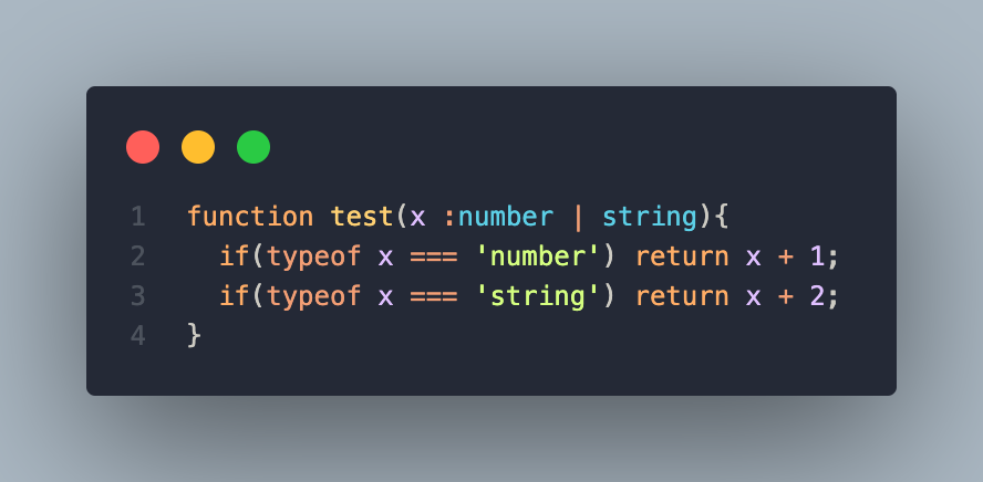 아래는 narrowing 중 조건문으로 타입의 범위를 좁히는 타입 가드의 패턴입니다.