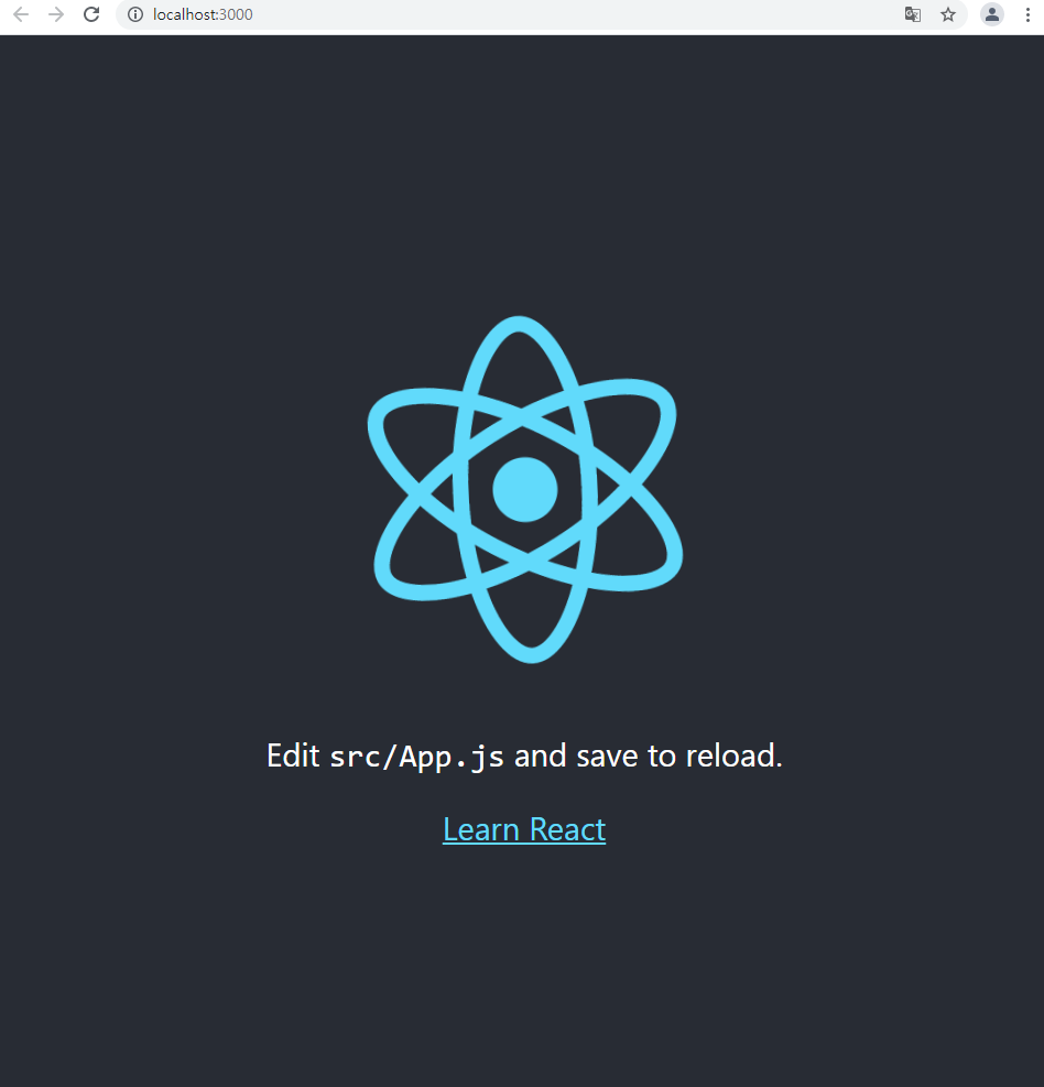 이 화면까지 보인다면 다 끝난 겁니다. 지금까지 파일들을 세팅하면서 설치 된 파일들로 가장 기본적인 리액트 화면을 보여주는 창이 열립니다. 본인이 하는 작업물이 이 페이지에 나타나 이제 작업을 하실 수 있는 환경이 다 세팅 되었습니다.