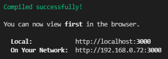 터미널 창에 저런 문구가 뜨면 성공입니다. 위 로컬, 네트워크 주소 아무거나 들어가시면 다음과 같은 창이 뜹니다.