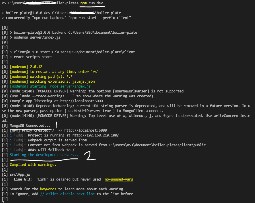 1번과 2번을 보시면 백엔드 서버와 프론트 서버가 같이 켜진 것을 확인 할 수 있습니다.