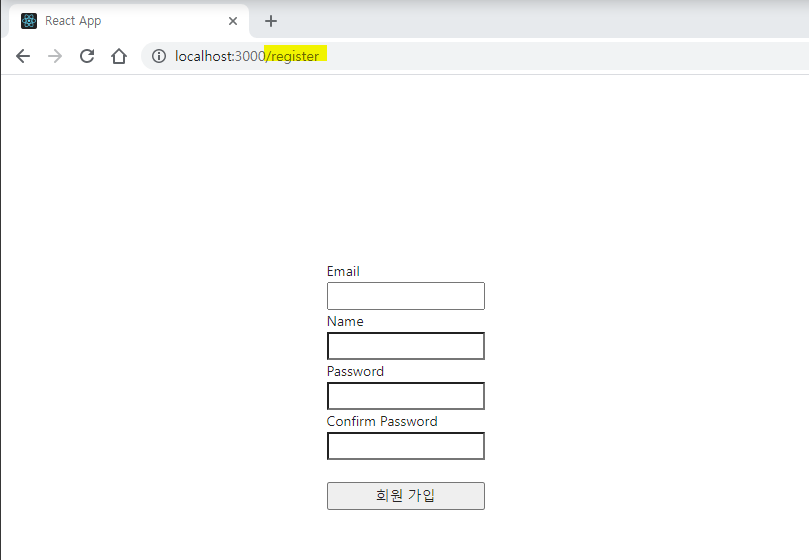 path='/register'로, 경로를 지정해줬기 때문에, 입력 후 회원가입 페이지로 넘어와 회원가입 페이지를 만들어 보겠습니다.
