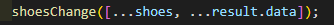 앞서 말씀드린 것처럼, 성공했을 시에는 then() 안에 데이터를 보여줄 것인데, 제가 첨부한 json 파일을 result.data로 불러와 보여줄 것입니다. 어떻게? 기존 신발 이미지를 보여주던 state에서, 값을 변경해주는 자리에 state 복사본과(...state) result.data를 같이 입력해주는 것입니다.