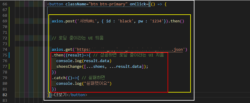 이처럼 '더 보기'라는 버튼을 클릭했을 시(onClick={()=>{}}) 동작을 줬습니다.