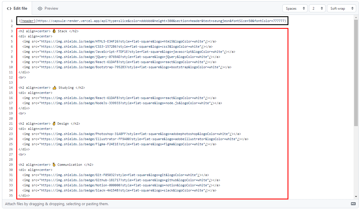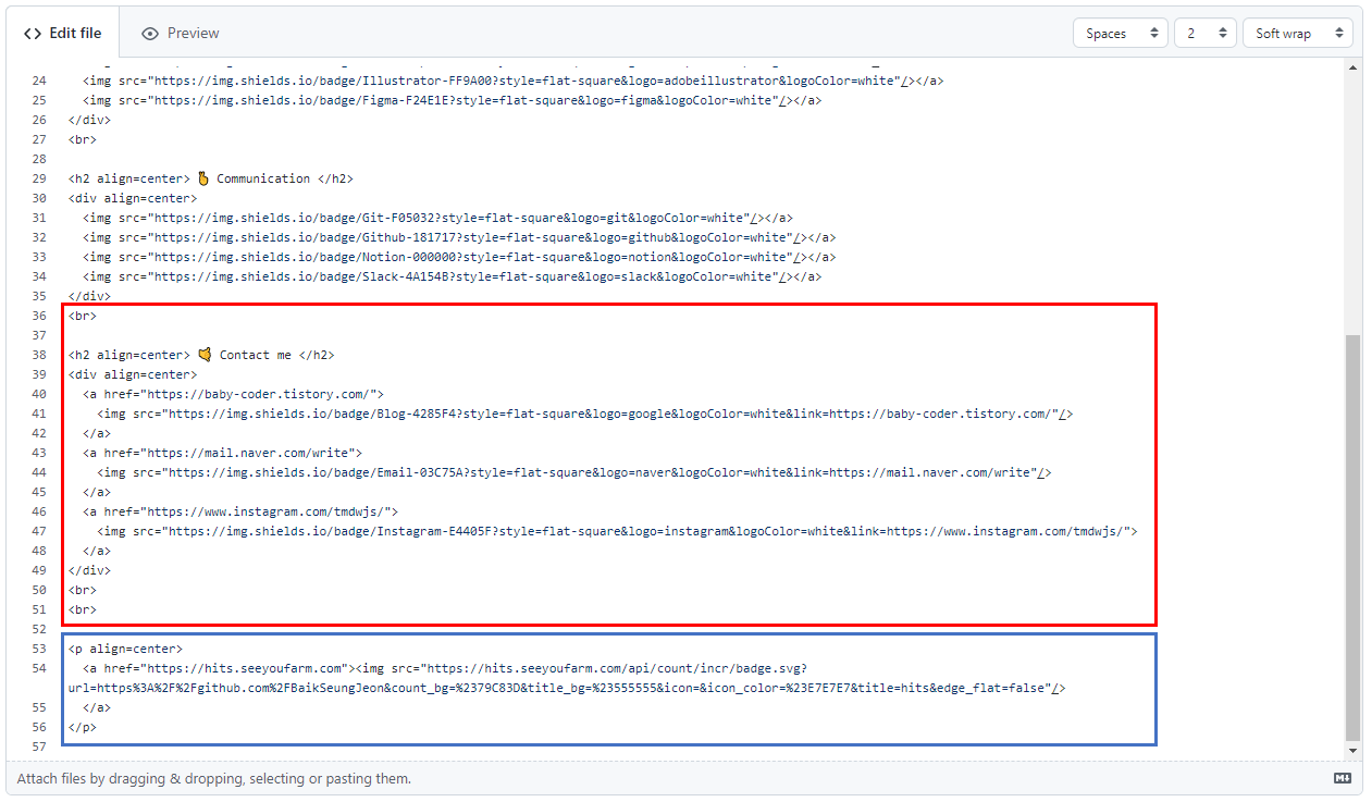 어차피 제 글이 상단에 노출 될 일이 없기 때문에 제 글을 보고 README를 꾸미시는 분들이 없을 거라 생각됩니다. 모르는 부분은 댓글 남겨주시거나 더 꿀팁 있으면 공유해 주세요.