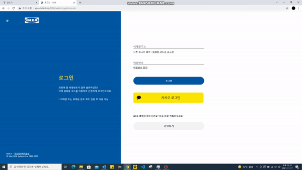 보시다시피 카카오 로그인 버튼이 자기 주장이 굉장히 강합니다. 참고로 저건 제가 넣은 버튼이 아니고 조장님께서 마지막에 합치는 과정에서 넣으면 재밌겠다고 넣으신 거고, CSS 작업을 안 하신 이유는 못 하셔서가 아니라 자랑하고 싶어서 자기주장이 강한 상태로 디자인 하셨다고 합니다. 이것 또한 기존 버튼 태그 디자인과 같게 CSS 작업을 할 계획입니다.