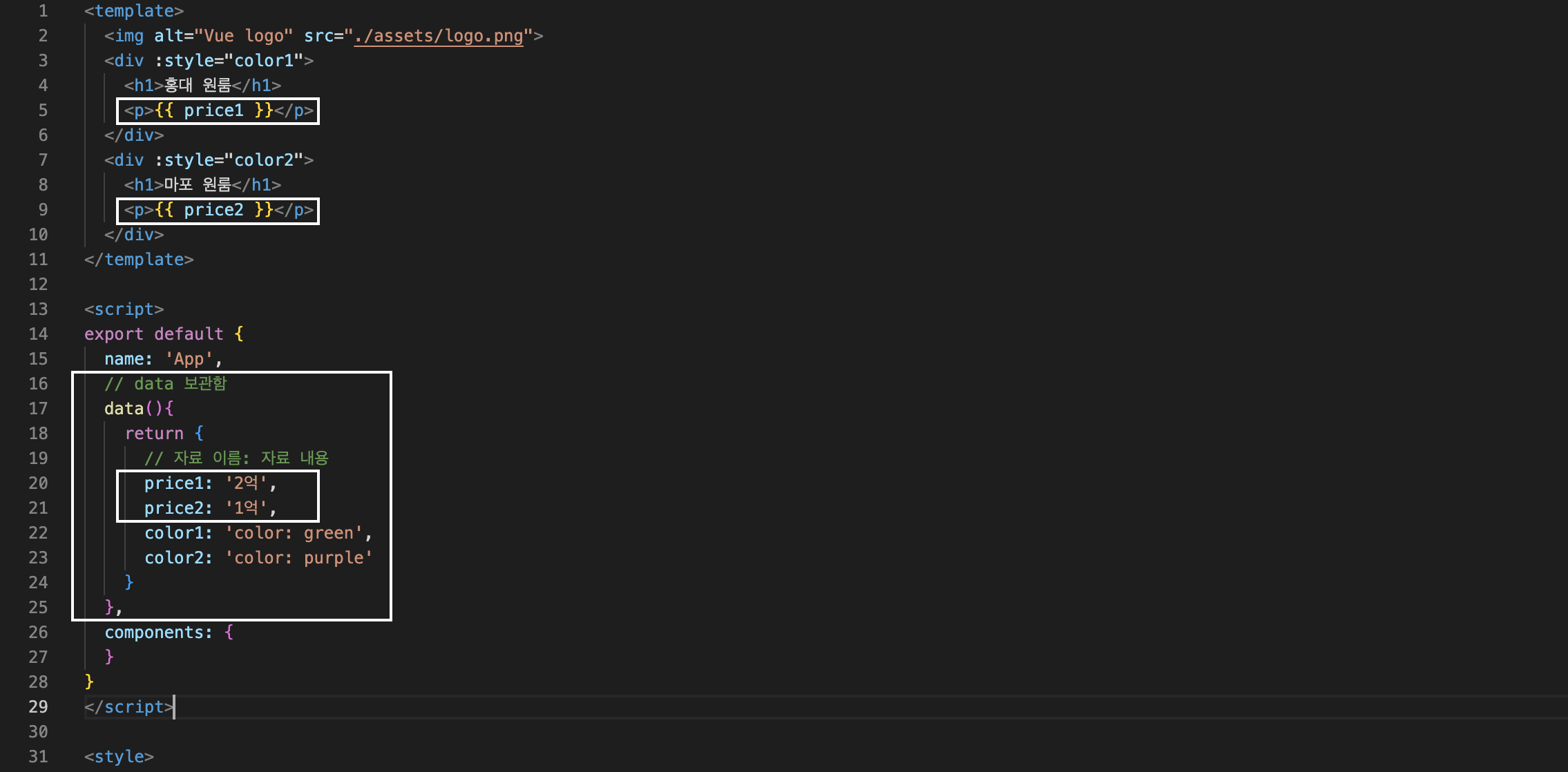 데이터 바인딩 문법이란 Vue.js에서 변수 등의 데이터를 보관하는 데이터 보관함이며, object 자료로 저장해 둡니다.