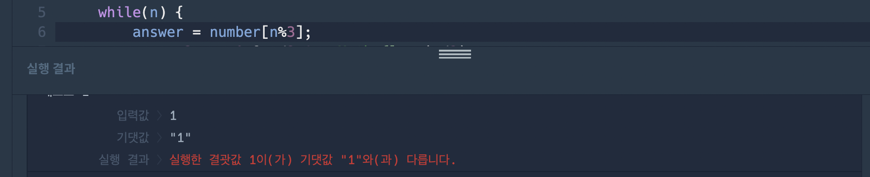 그리고 문제에서 예시로 제공한 표를 보면, 받아오는 매개변수를 3으로 나눴을 때(3개의 숫자가 계속 해서 돌기 때문에) 나머지가 1이면 그대로 1, 2면 그대로 2, 0일 때는 4가 되는 것 또한 확인이 가능합니다.