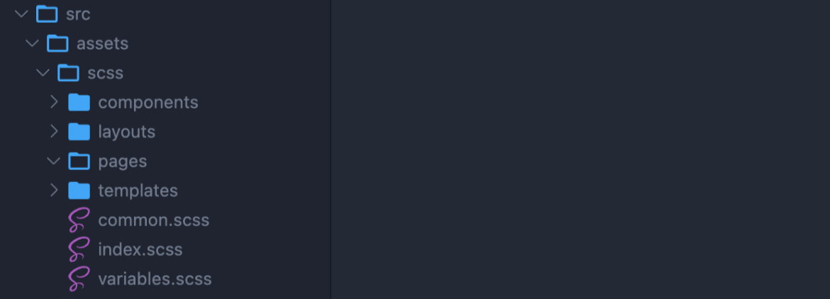 variables.scss: 위에 모든 scss 파일에서 사용할 변수만 정의(이 파일은 vue.config.js 또는 webpack.config.js에 적용함)